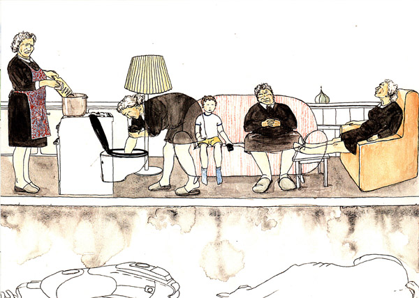 Titel: Gestern so gut wie heute und morgen Jahr: 2015 Illustrationen für Diplomprojekt von Claudia Burr